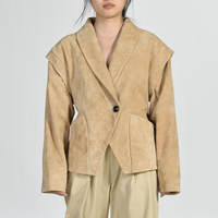 All'ingrosso cappotto morbido in vera pelle di pecora monopetto a maniche lunghe donna autunno personalizzato giacca di pelle scamosciata di lusso di alta qualità