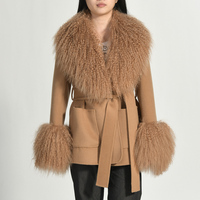 Jxwatcher Sıcak Yumuşak Kalın El Yapımı Uzun Kollu Moda Lüks Kışlık Gerçek Moğol Kürk Yaka Çift Taraflı Saf Yün Kadın Mont