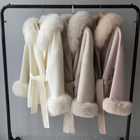 Jxwatcher Sıcak Yumuşak Kalın El Yapımı Çift Taraflı Yün Palto Lüks Kışlık Gerçek Tilki Kürklü Kapüşonlu Kadın Büyük Beden Yün Palto